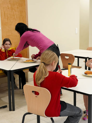 Nach einer Entspannungsphase wird täglich ein abwechslungsreiches Menü der Marke Prauchner gemeinschaftlich serviert. Nach der Lernstunde, in der vor allem die Hausübungen erledigt und der Lernstoff wiederholt werden, geht es dann hinaus in die frische Luft. Unser Schulhof bietet viele Bewegungsmöglichkeiten.