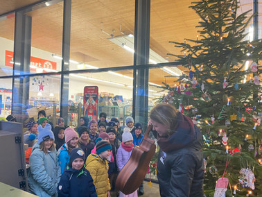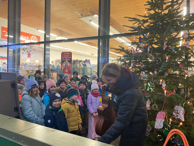 Außerdem fertigten die Kinder in der ersten Dezemberwoche 30 Christbaumwichtel und -glocken an und brachten sie gemeinsam zum Spar in Gresten, wo sie auch das Nikolauslied sangen. Als kleines Dankeschön erhielten die Kinder einen Brioche-Krampus und ein Getränk. Vielen Dank für die schöne Christbaumschmuck-Aktion!